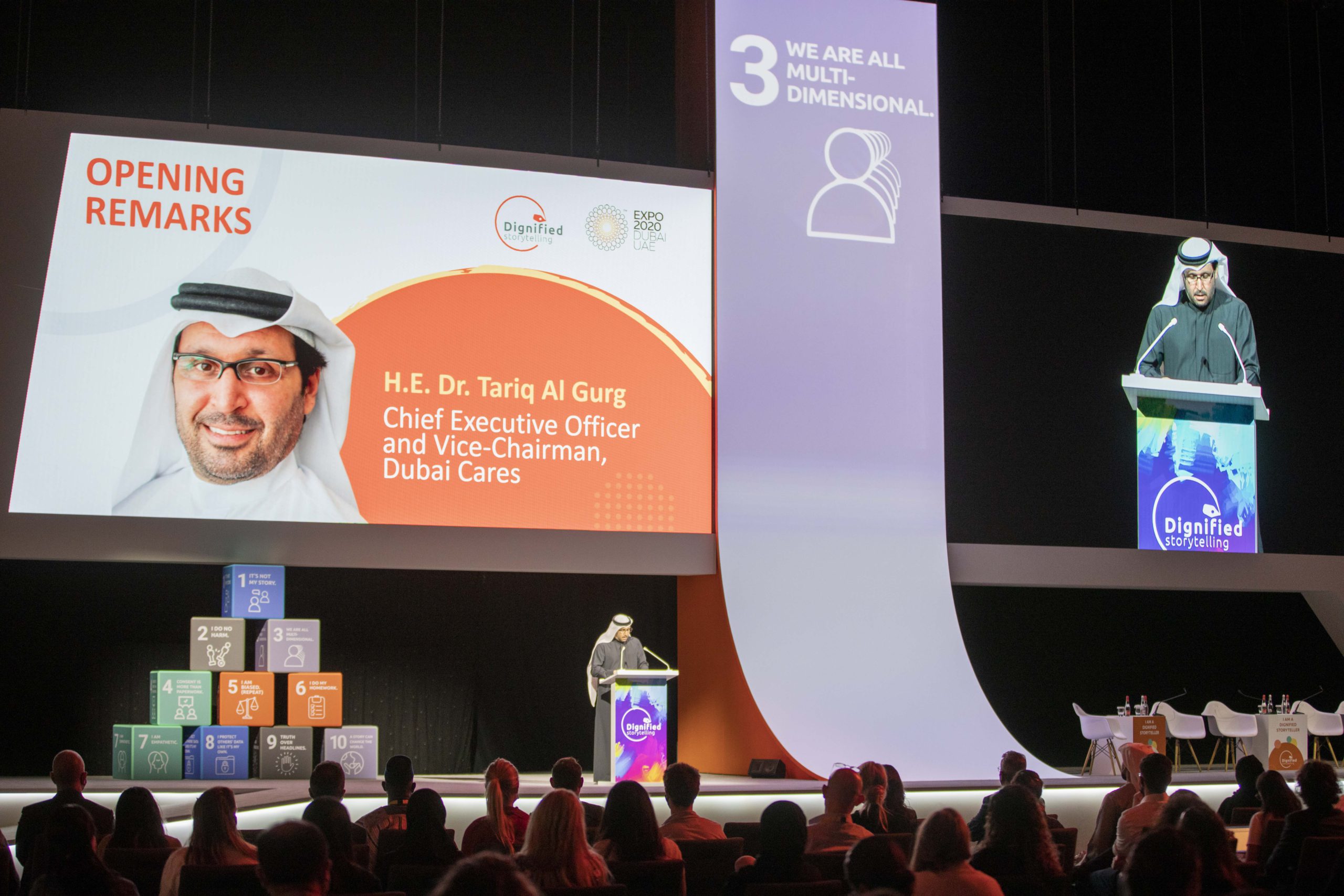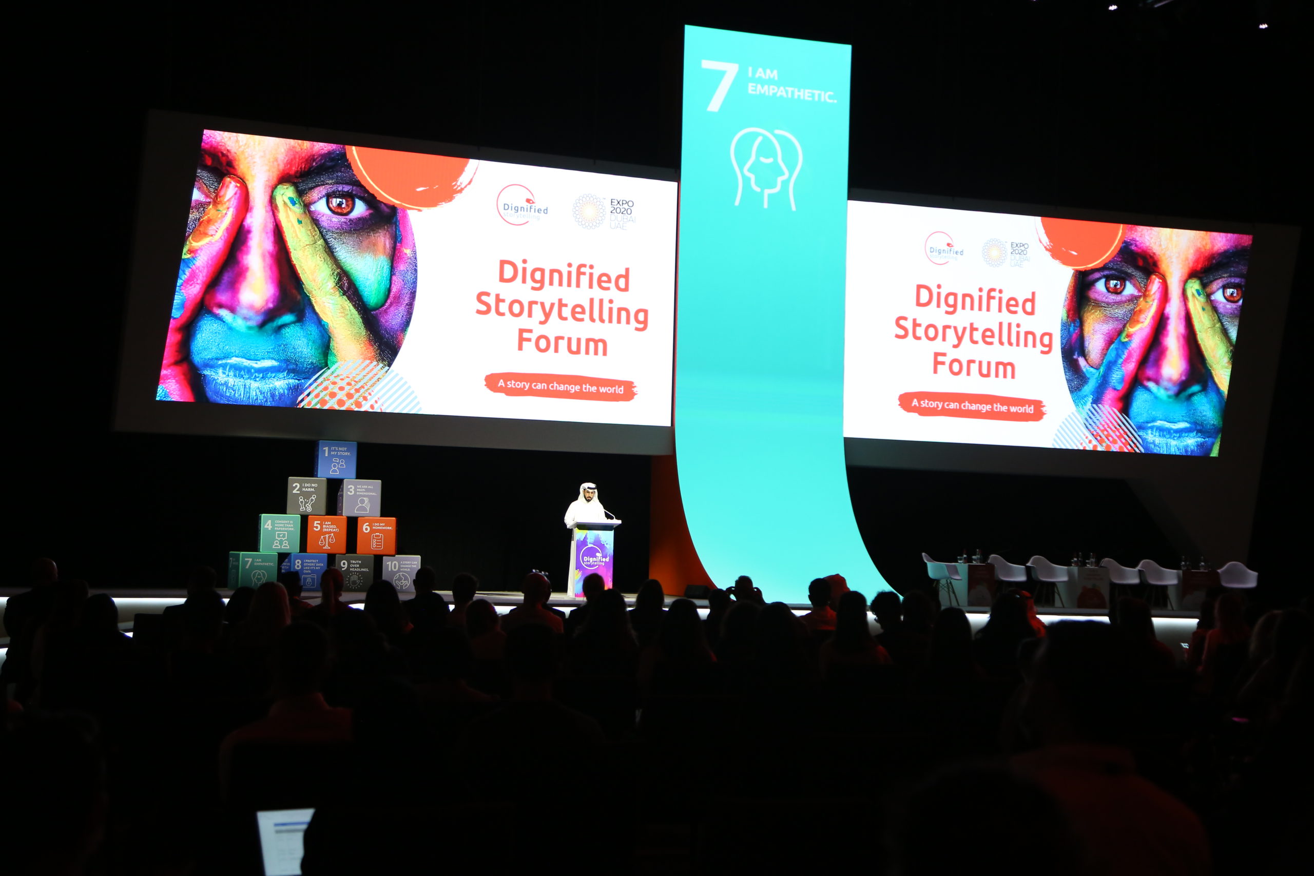 Marking a key milestone in its journey to place human dignity at the heart of storytelling, Dignified Storytelling, an initiative by Dubai Cares, Expo 2020 Dubai and the UAE Ministry of Foreign Affairs and International Cooperation (MOFAIC), hosted its flagship Dignified Storytelling Forum on the 10th of December, 2021 at Dubai Exhibition Center (Hall 1A) at Expo 2020 Dubai, under the theme: “A story can change the world.”